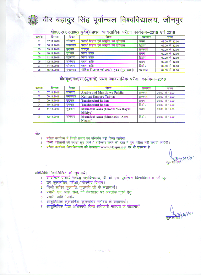 VBS Purvanchal University has been declare BAMS, BMUS exam schedule. All the Candidates Of Purvanchal University they Can Check Or Download Exam date sheet With the help of University Site Or Our Site.